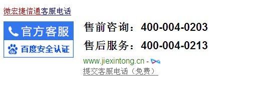 近日,博大互通旗下产品《微宏捷信通》提交并审核通过了百度客服电话,只要在百度搜索微宏捷信通或者微宏捷信通客服就可以出现下图中的客服电话。