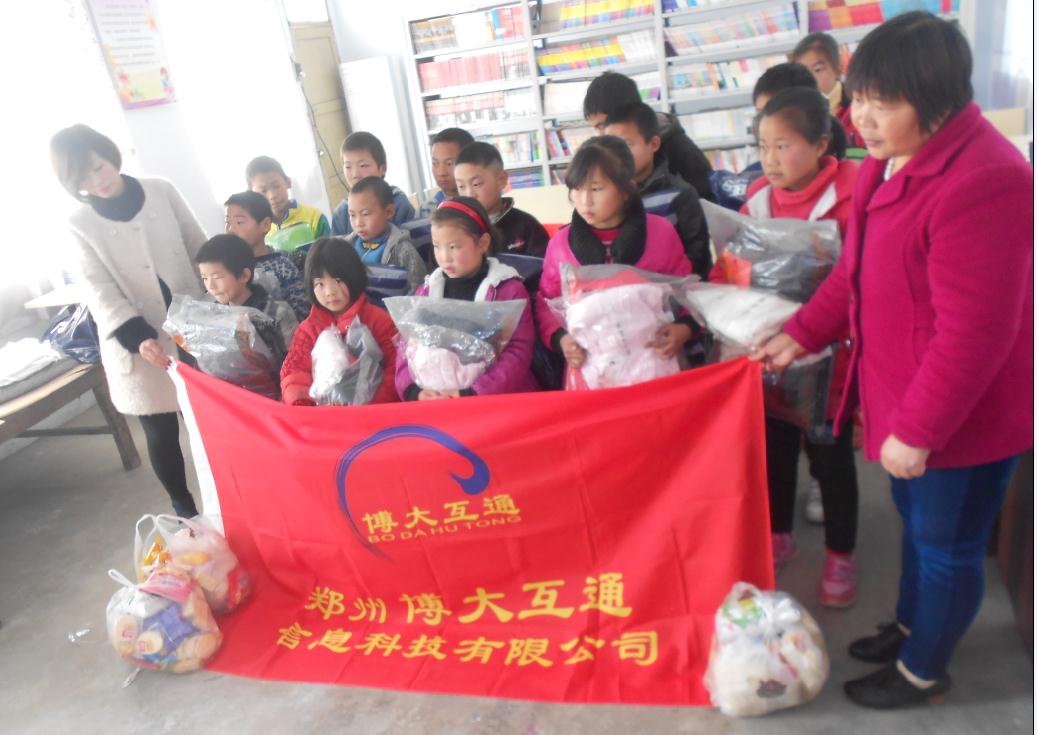 11月19日,博大互通总经理助理黄瑞娟女士带领公司两位爱心员工代表,走访了登封市晋爻希望小学,为孩子们送去了御寒的棉衣。
